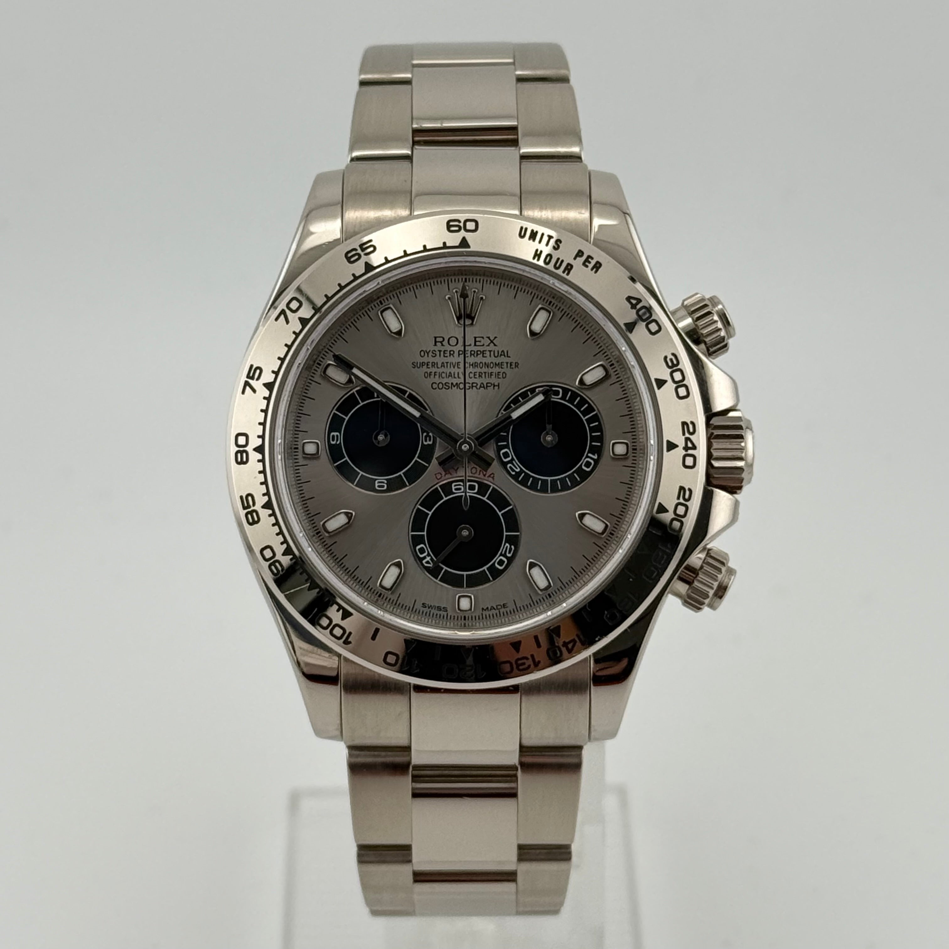 Die Daytona wurde in Partnerschaft mit dem berühmten Rennkurs "Daytona International Speedway" in Florida entwickelt und erhielt ihren Namen als Hommage an diese legendäre Rennstrecke. Ihr charakteristisches Design zeichnet sich durch einen Tachymeterring auf der Lünette und Drücker auf der rechten Seite des Gehäuses aus, die es dem Träger ermöglichen, die Geschwindigkeit präzise zu messen.